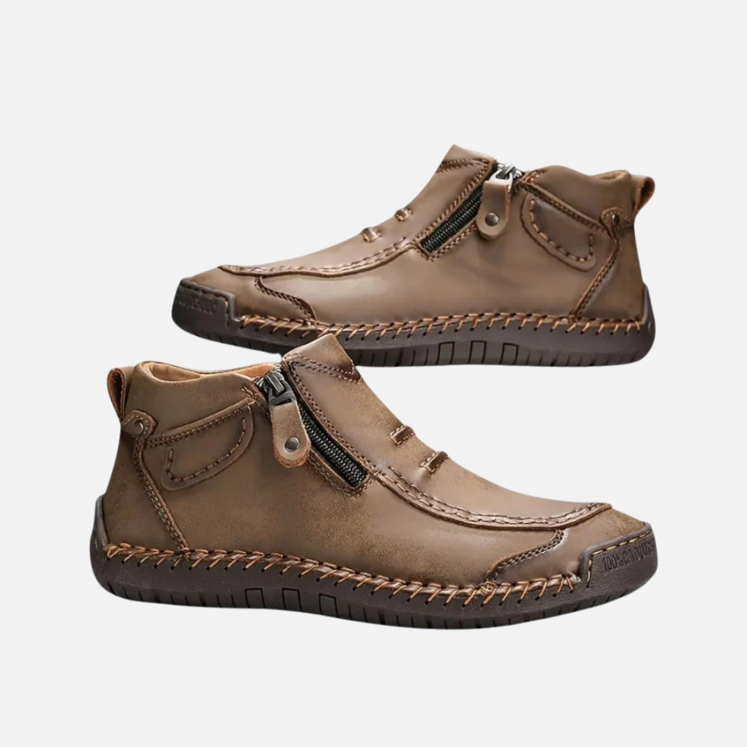 Men's Leather Ankle Shoes - Stitched Casual Zip-Up Boots